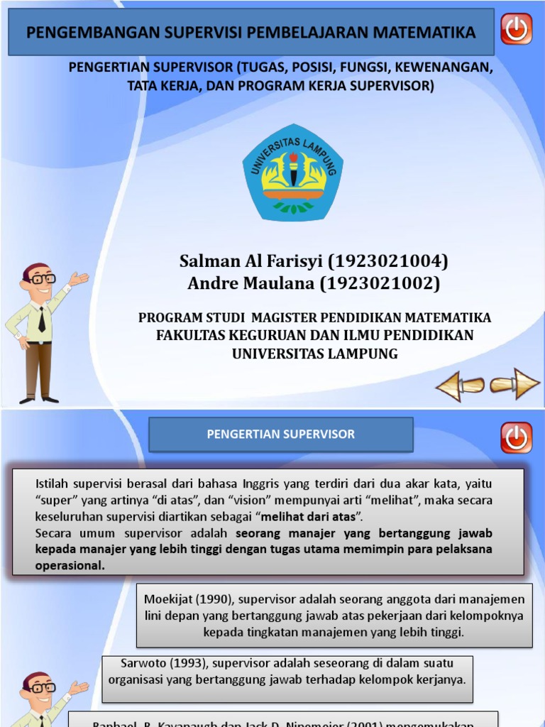 Training Supervisory Skill Di Jakarta Training Provider Jakarta Indonesia Pt Presenta Edukreasi Nusantara from presenta.co.id Supervisor merupakan salah satu elemen penting dalam keberlangsungan suatu sistem organisasi apakah anda adalah salah satunya? Kalau anda ingin menduduki jabatan ini, kenali dulu apa itu supervisor, tanggung jawab. Pengertian supervisor sendiri mengacu pada posisi atau jabatan seseorang yang memiliki kuasa dan wewenang untuk. Hide 1 supervisor adalah : Supervisor adalah jabatan dengan kekuasan dan wewenang. Supervisor adalah posisi seseorang yang memiliki hak dan wewenang untuk menunjuk, mengatur, dan memberi perintah kepada eksekutif senior. Simak beberapa fungsi dan tugas seorang supervisor di perusahaan. Supervisor adalah seseorang yang memiliki tugas memantau (mengawasi, mengelola) beberapa karyawan perusahaan di bawahnya di area kerja.